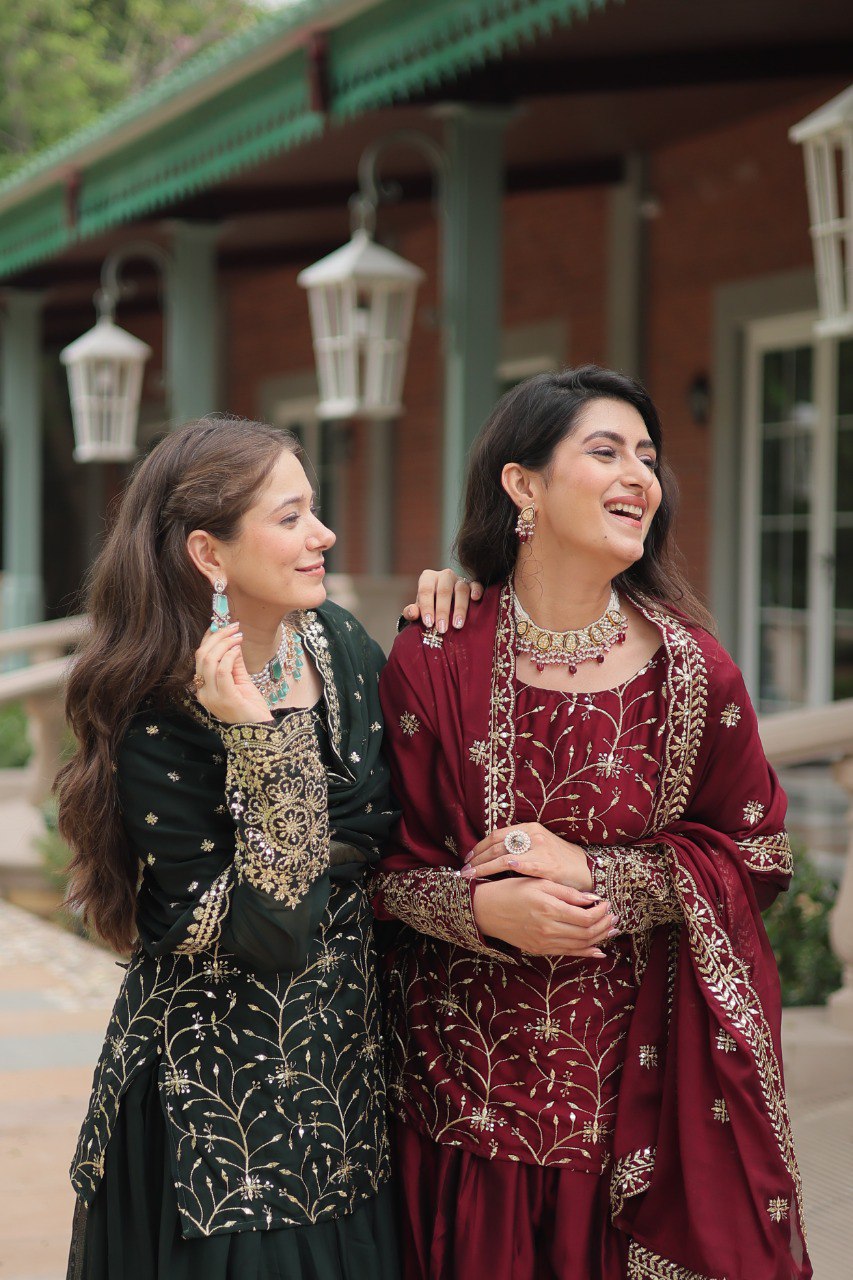 PLAZZO: Fabric & Work :-Rangoli Silk With Heavy Sequins & Thread Embroidered work