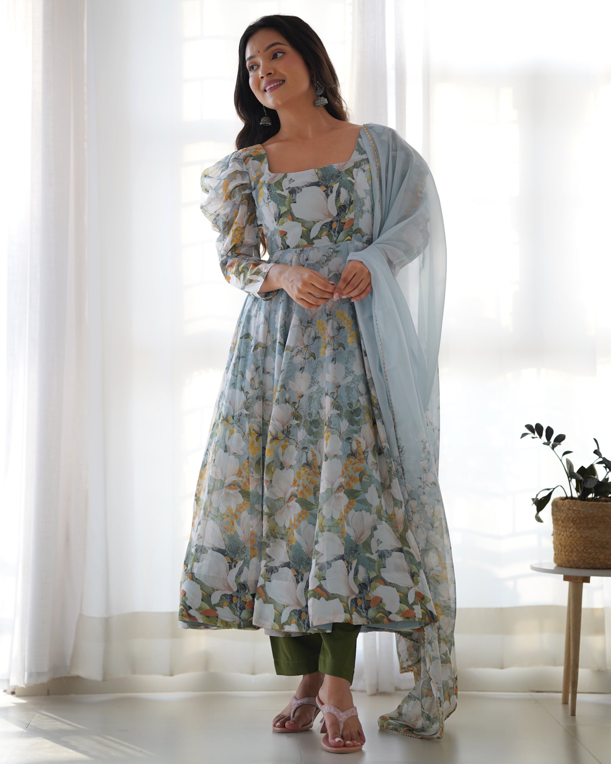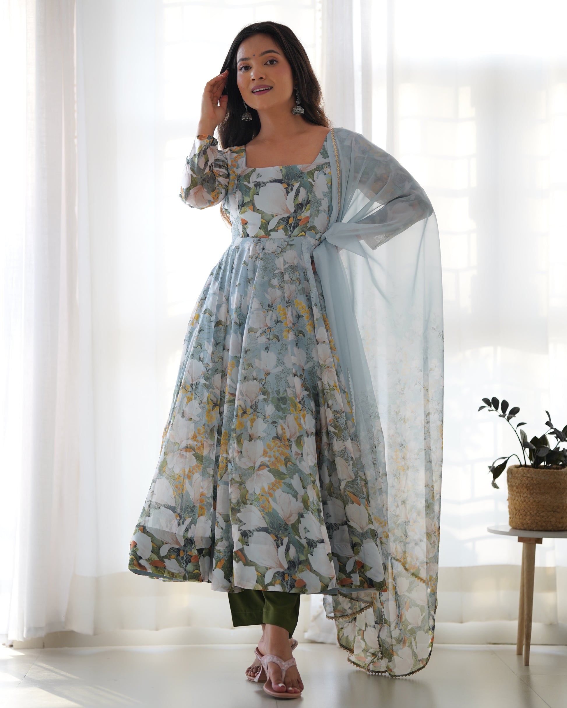 White Multi Organza Kurta Set