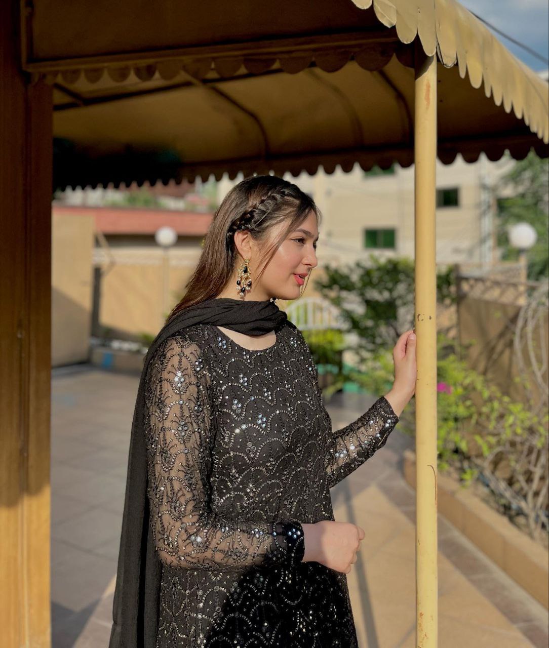 Black Faux Blooming Anarkali Style Sarara Suit Set