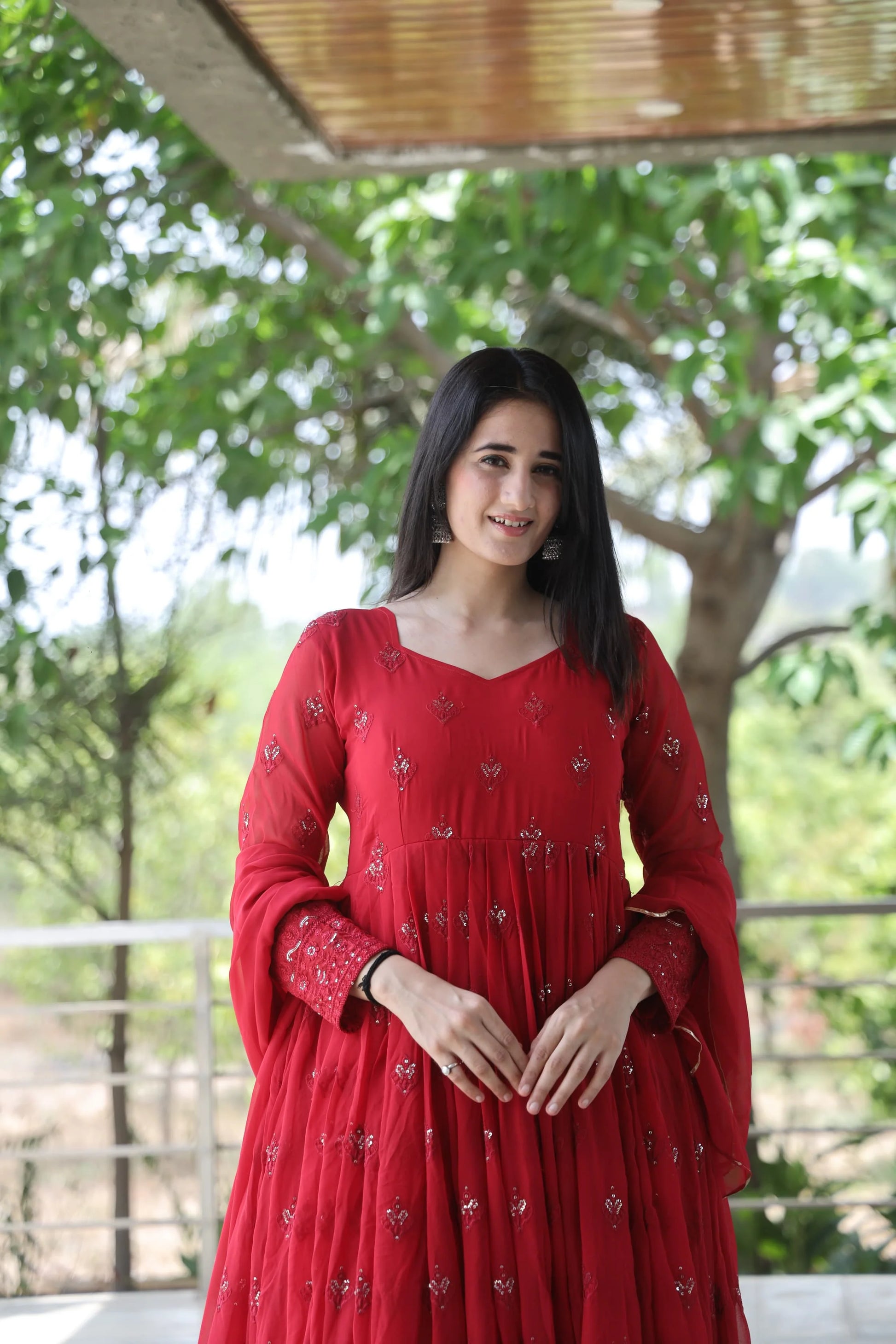 RUKMANI'S MAROON COLOURED ANARKALI SUIT SET